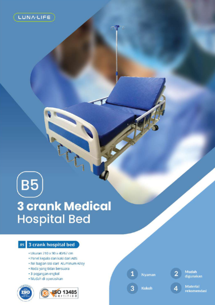 LUNA LIFE Tempat Tidur Pasien 3 Crank (Ranjang Medis 3 Engkol)